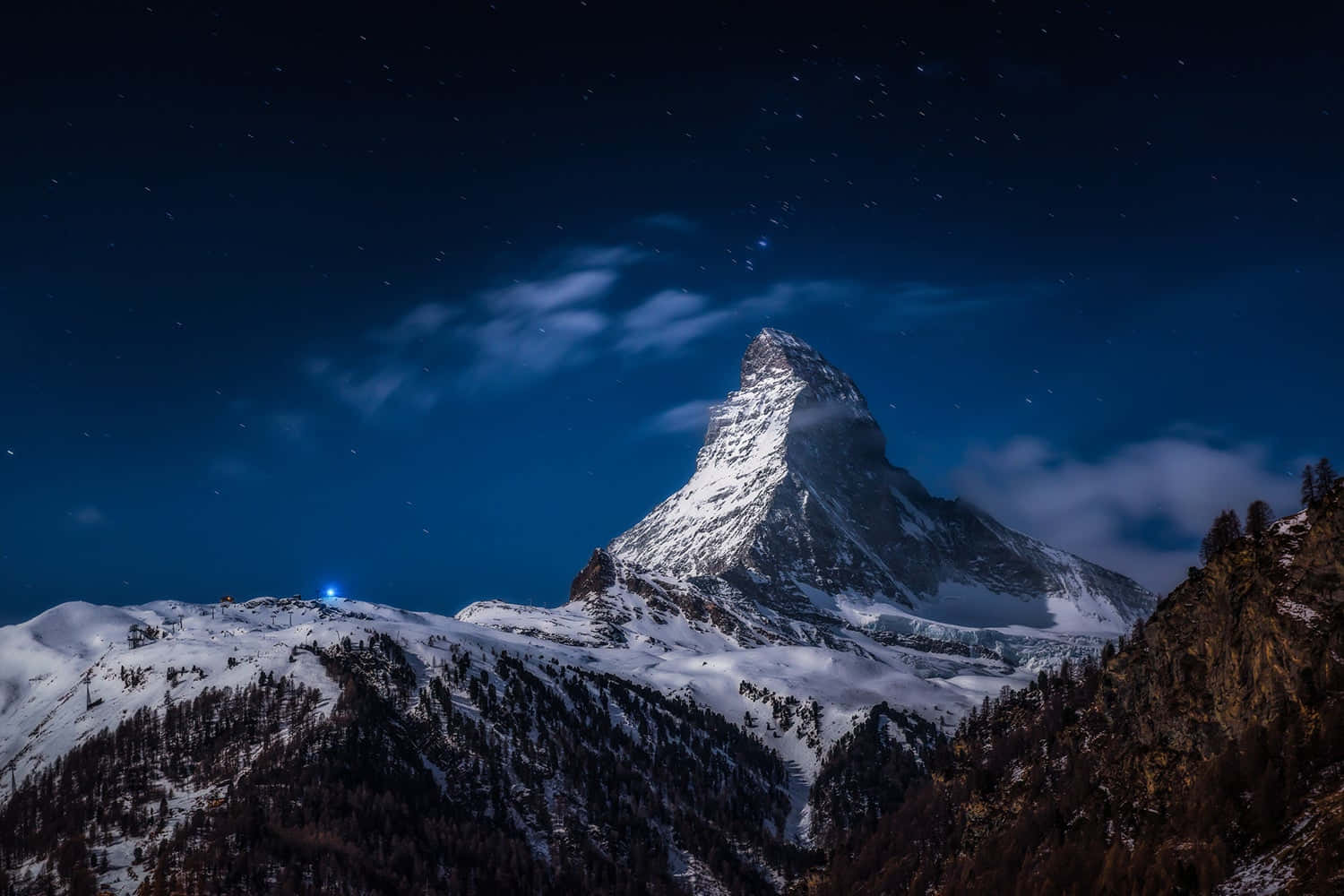 Dark Blue Starry Sky Above Matterhorn Wallpaper -
