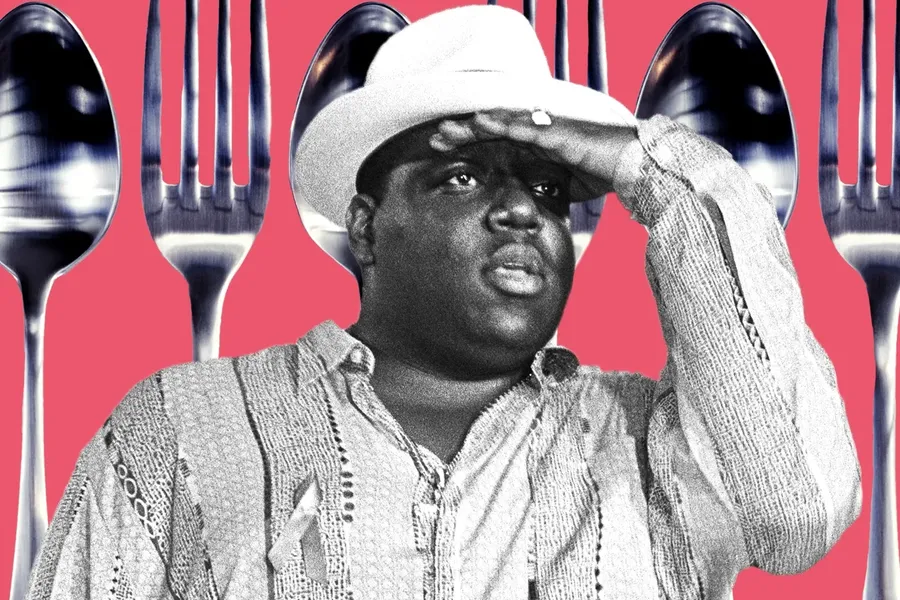 Related Notorious B I G Salutewith Spoonsand Forks Background Wallpaper