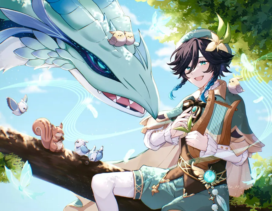 The Celestial Bard - Venti, God Of Freedom In Genshin Impact Wallpaper -