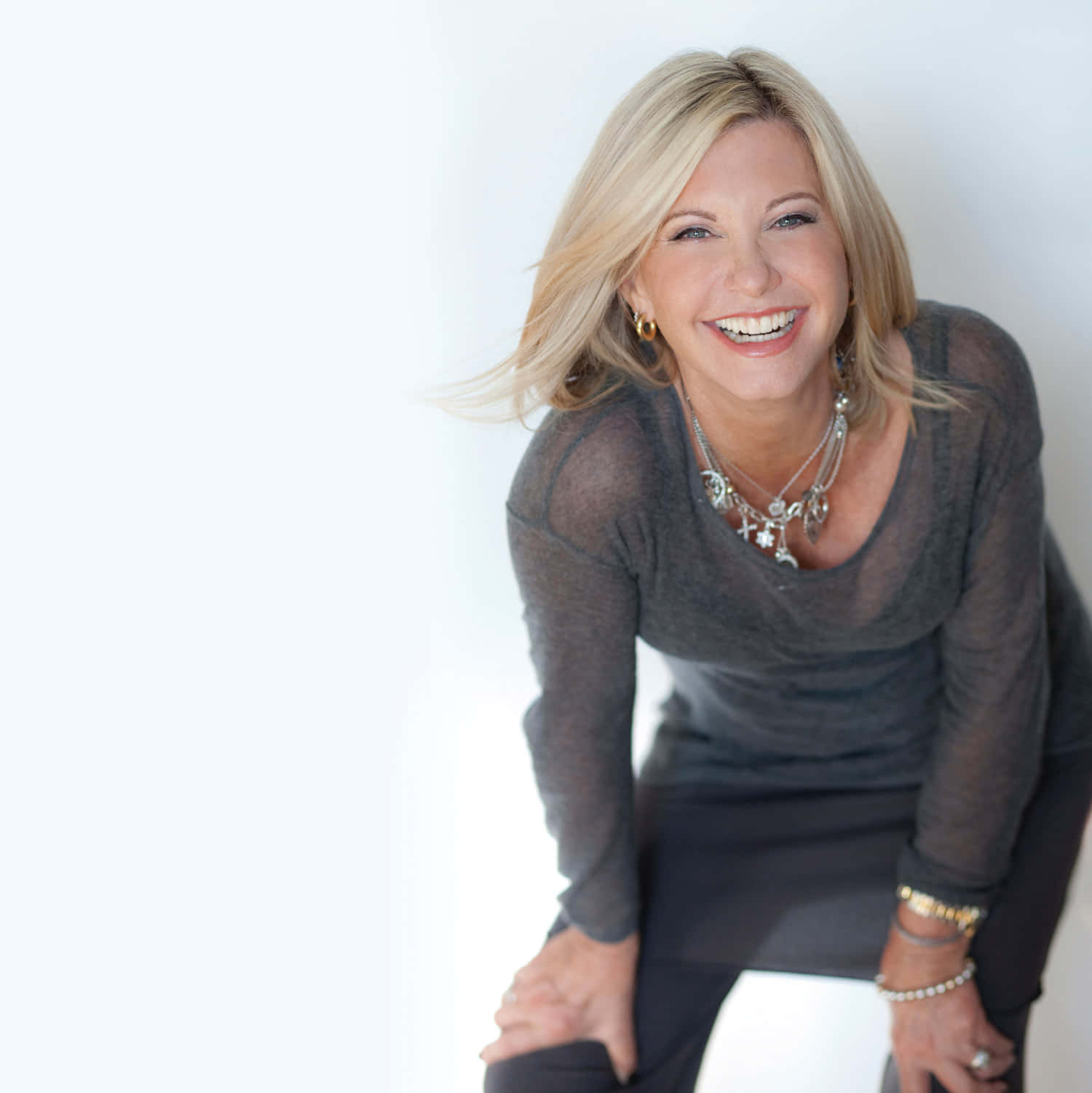 Olivia Newton John Leaning On Her Knees Wallpaper