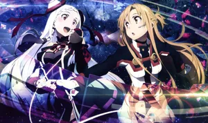Silica And Pina Whirlwind In Sword Art Online Wallpaper -