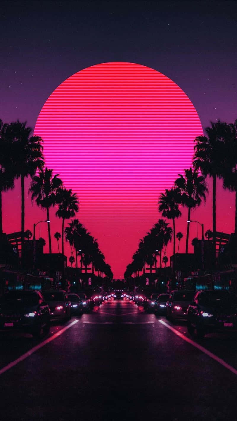 Neon Pink City Sun Wallpaper -