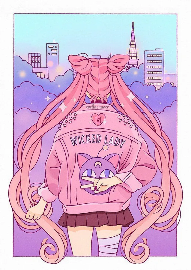 Pastel Sailor Moon Chibiusa Aesthetic Illustration Art Wallpaper