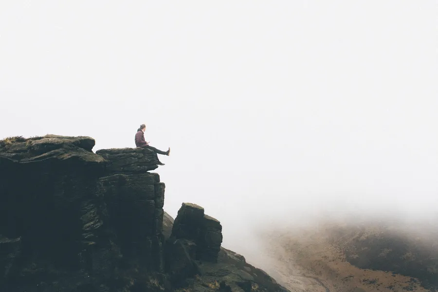 Person Sitting Along On Cliff Ledge -