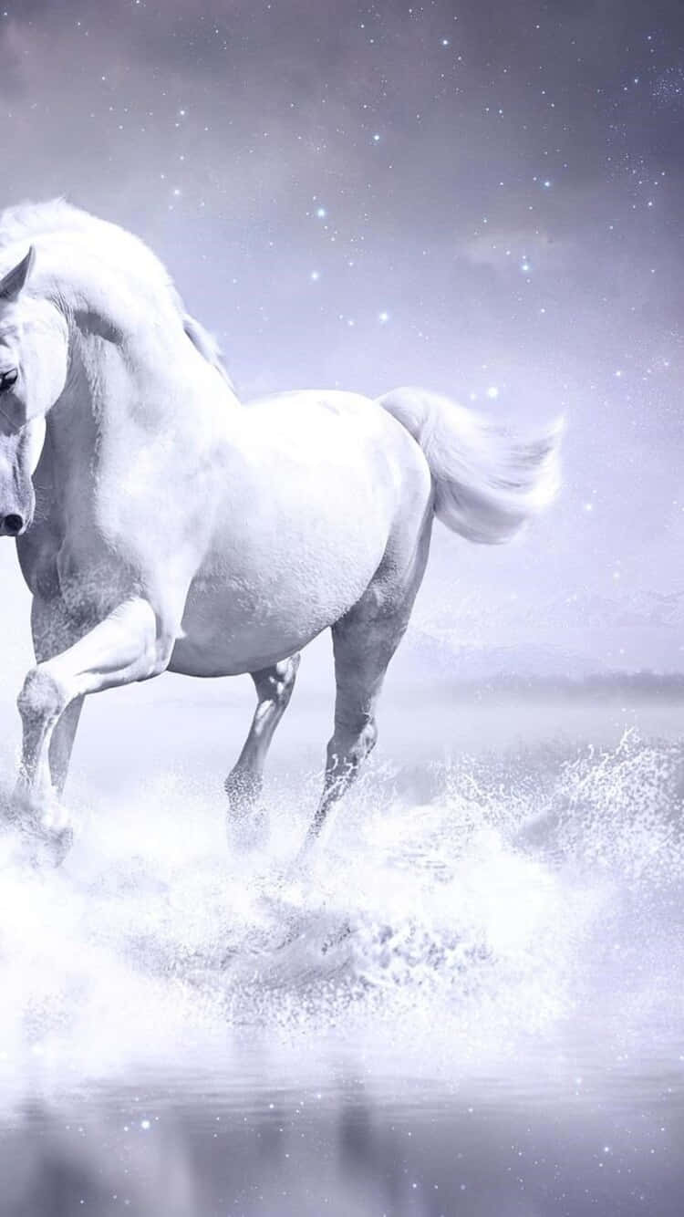 A Beautiful White Horse Galloping Through A Scenic Landscape Wallpaper -