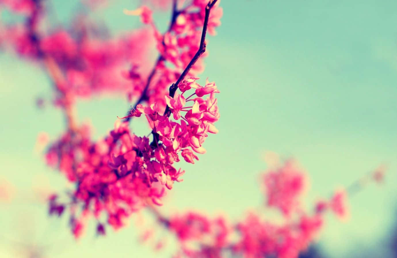 Pink Flowers On A Branch With Blue Sky Wallpaper