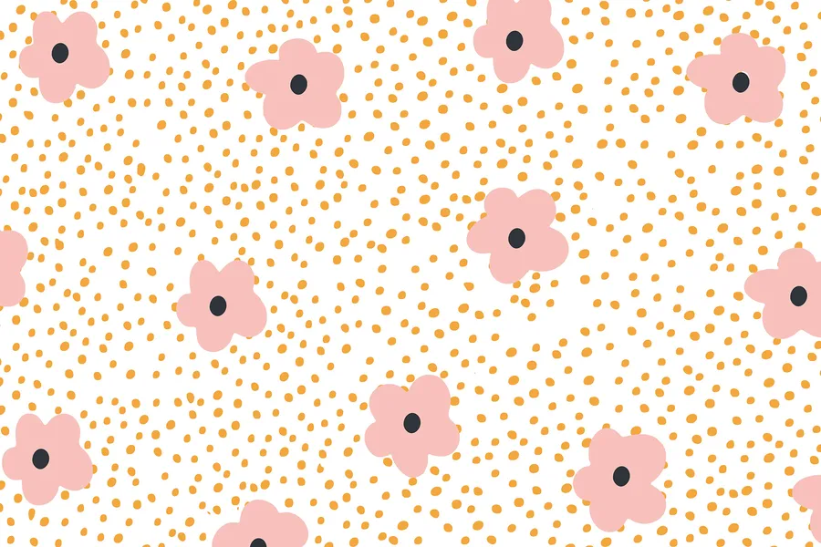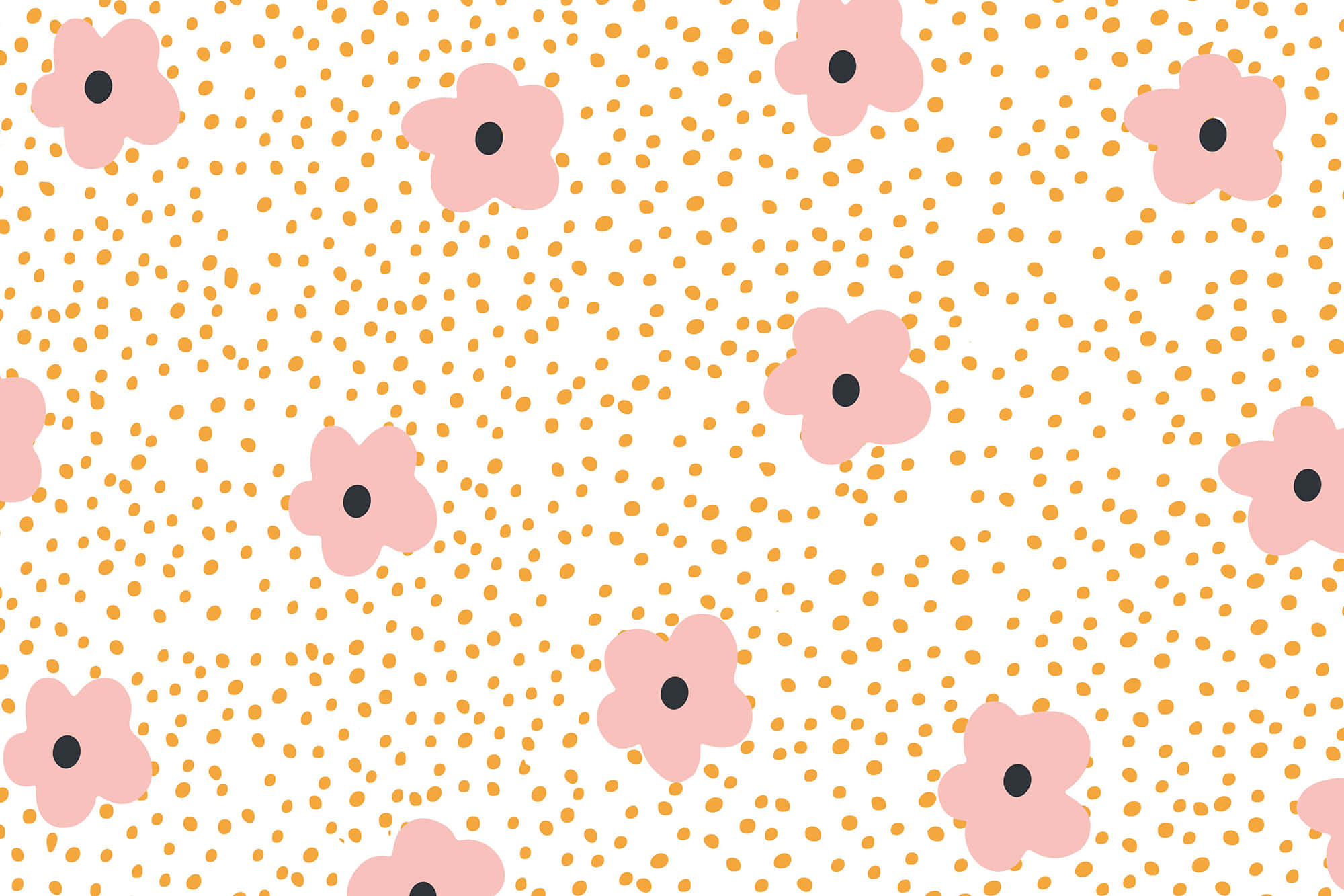 Related Pink Flowers With Pink And White Polka Dots Wallpaper