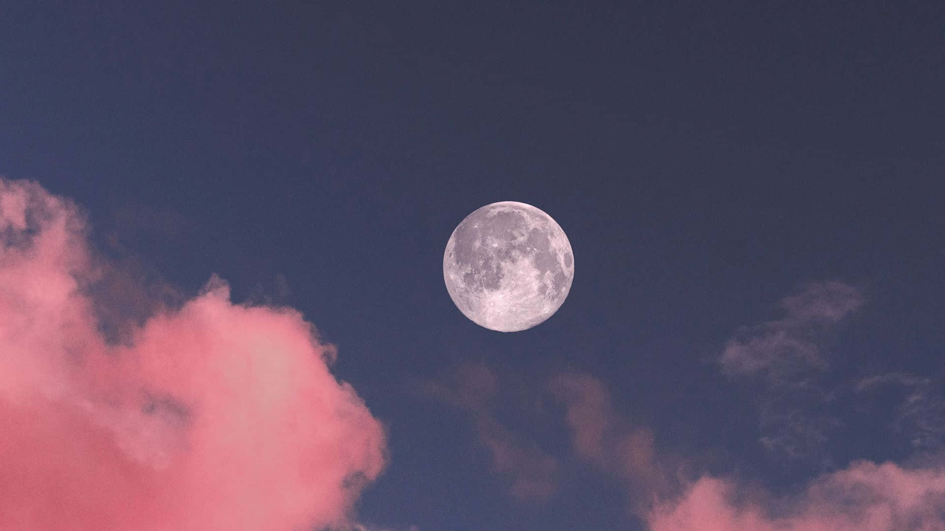 A Pink Moon In The Sky With Clouds Wallpaper -