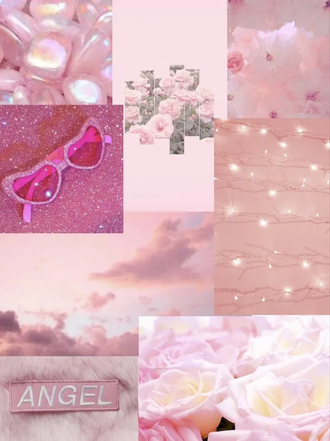 Related Pink, Roses, And Sunglasses Are Shown In A Collage Wallpaper