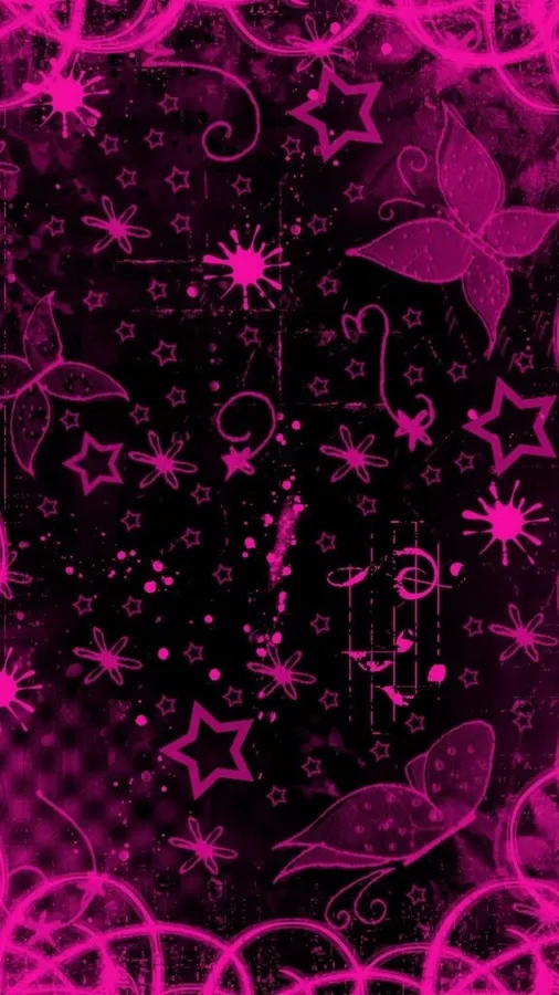 Pink Wallpaper With Stars And Butterflies Wallpaper -