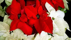 "stunning Red And White Holiday Poinsettias" Wallpaper  -