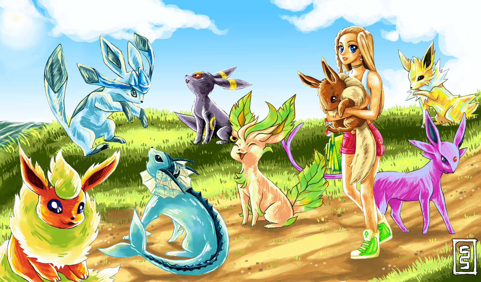 Cute Eevee And Eveelutions Cuddling Wallpaper -