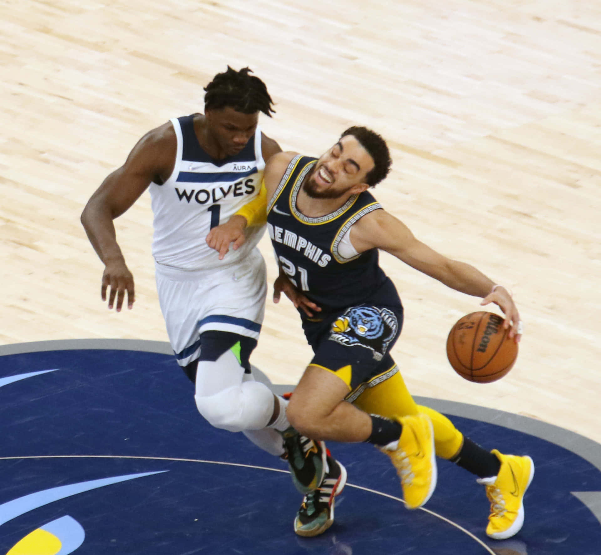 Tyus Jones, No. 21 Of Memphis Grizzlies, In Action On The Court. Wallpaper -