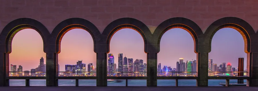 Archways Framing City In Museum Of Islamic Art Wallpaper -