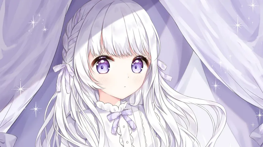Related Purple Eyed Anime Girl Starry Backdrop Wallpaper