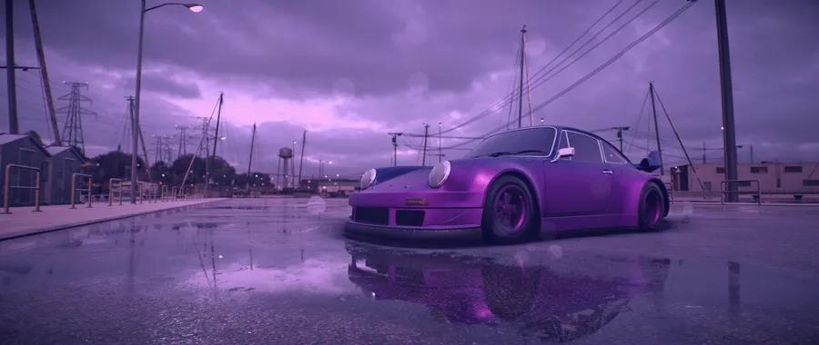 Purple R W B Porsche Dusk Reflection Wallpaper