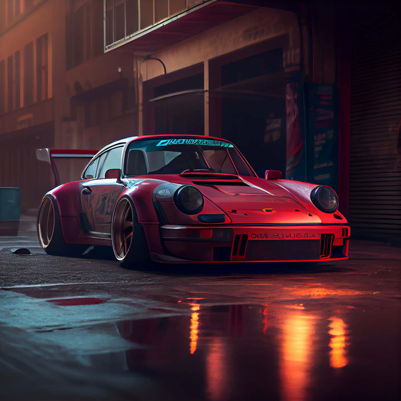 Neon Lit R W B Porsche Night Scene Wallpaper -