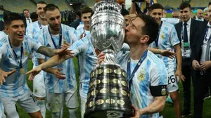 ![]()  "lionel Messi Celebrating With The Championship Trophy Representing Argentina" Wallpaper