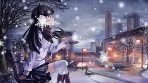 A Lonely Yet Beautiful Anime Girl Looking Out Over A City Skyline With A Feeling Of Sadness. Wallpaper -