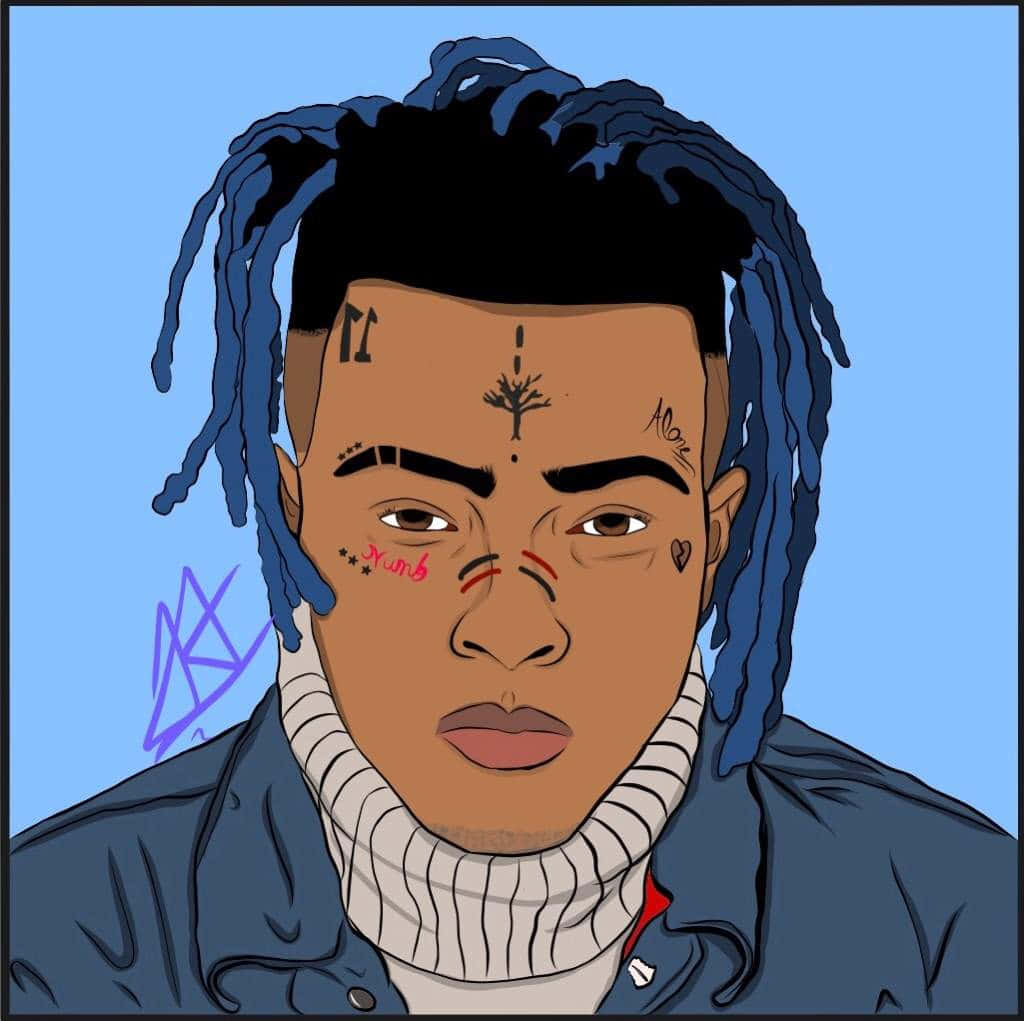 Caption: Dynamic Portrait Of Xxxtentacion With Blue Hair Wallpaper -