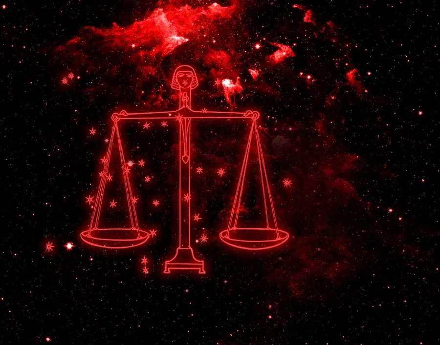 Red Aesthetic Cute Libra Zodiac Graphic Art Wallpaper -