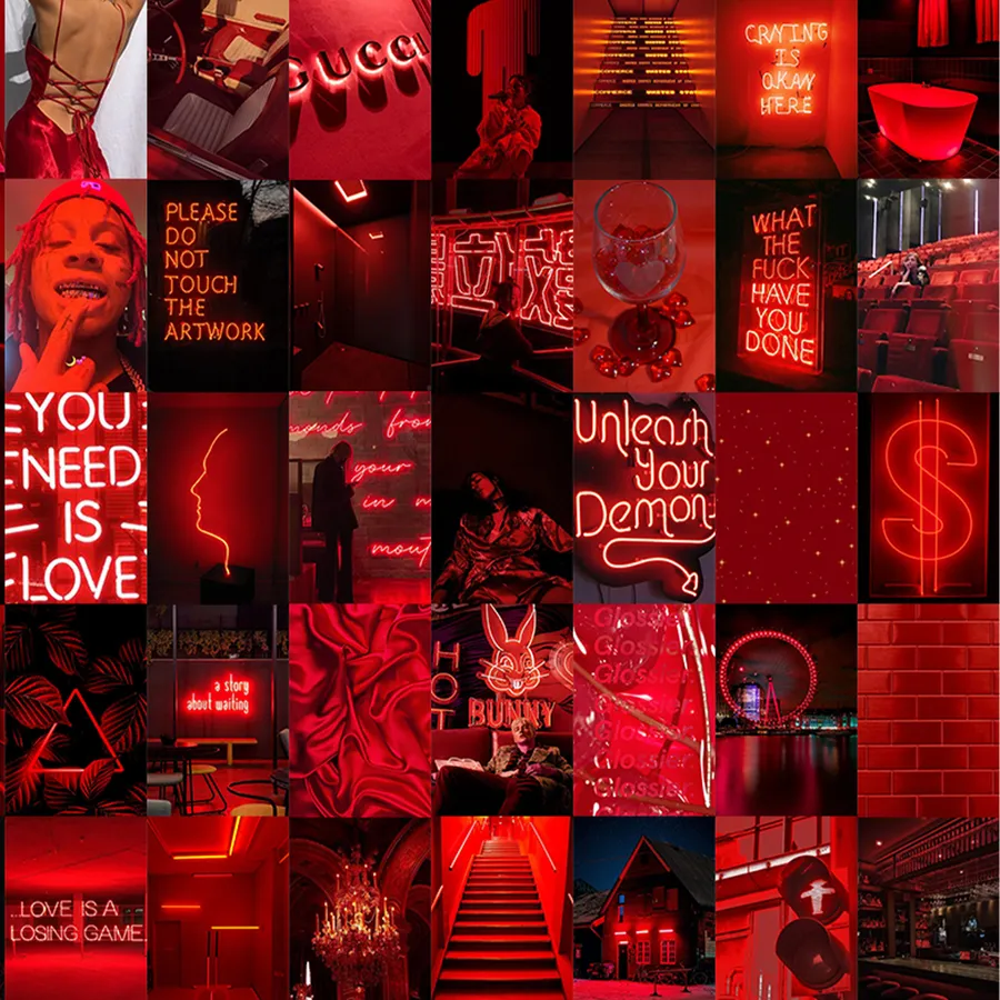 All Neon Red Aesthetic Collage Wallpaper -