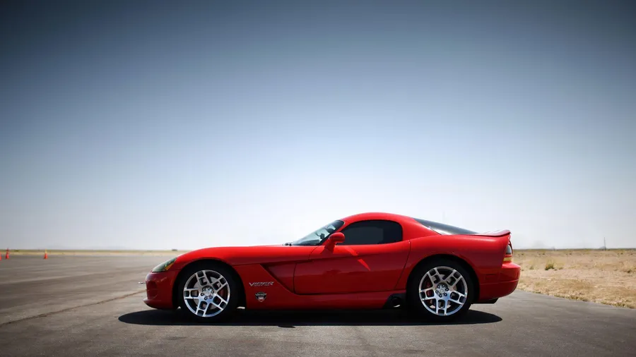 Related Red Dodge Viper Side View Open Road Wallpaper