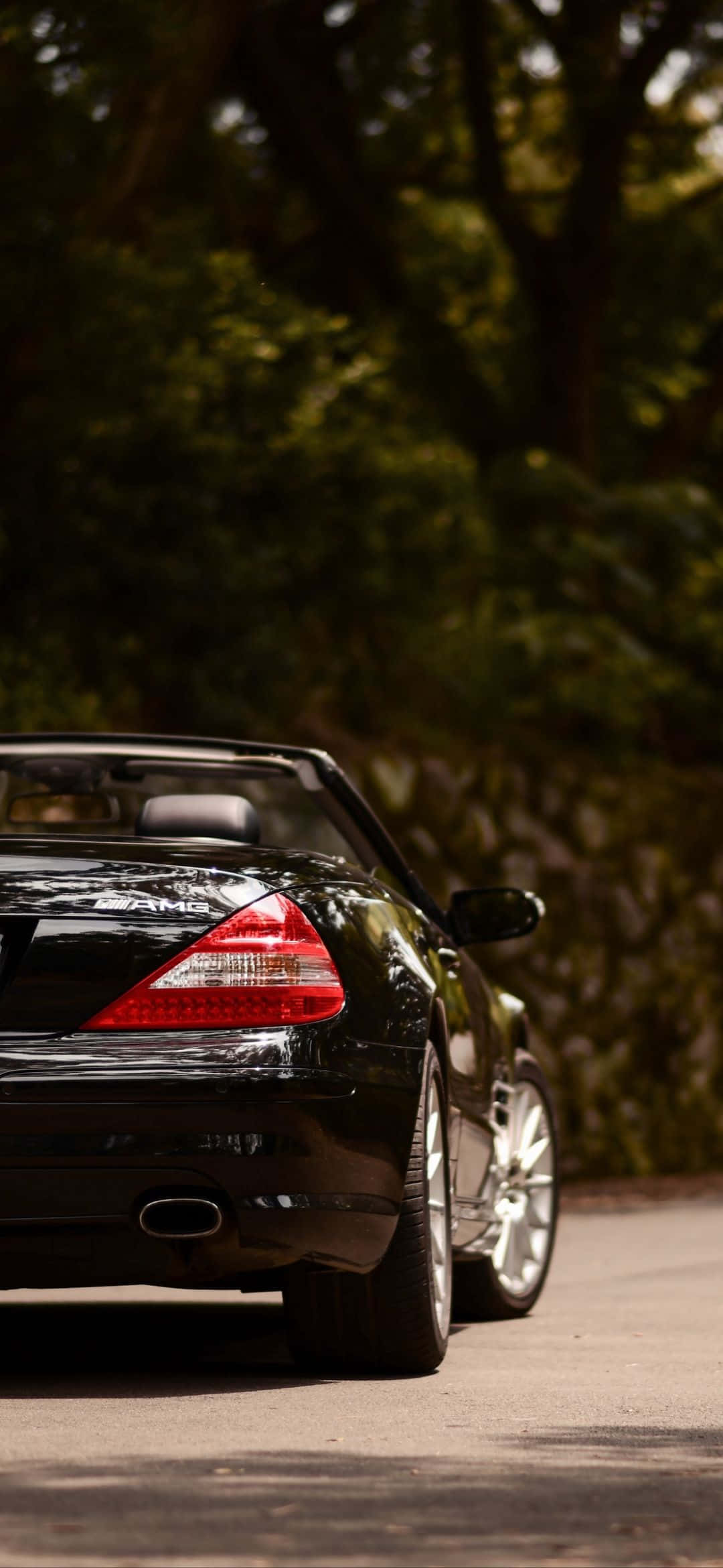 A Street With A Car Driving Down It Wallpaper -