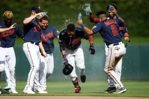 "shower Time For Minnesota Twins - Exciting Baseball Game Action" Wallpaper -