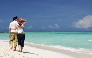 Romantic Escape – A Couple On A Sunset Beach Wallpaper