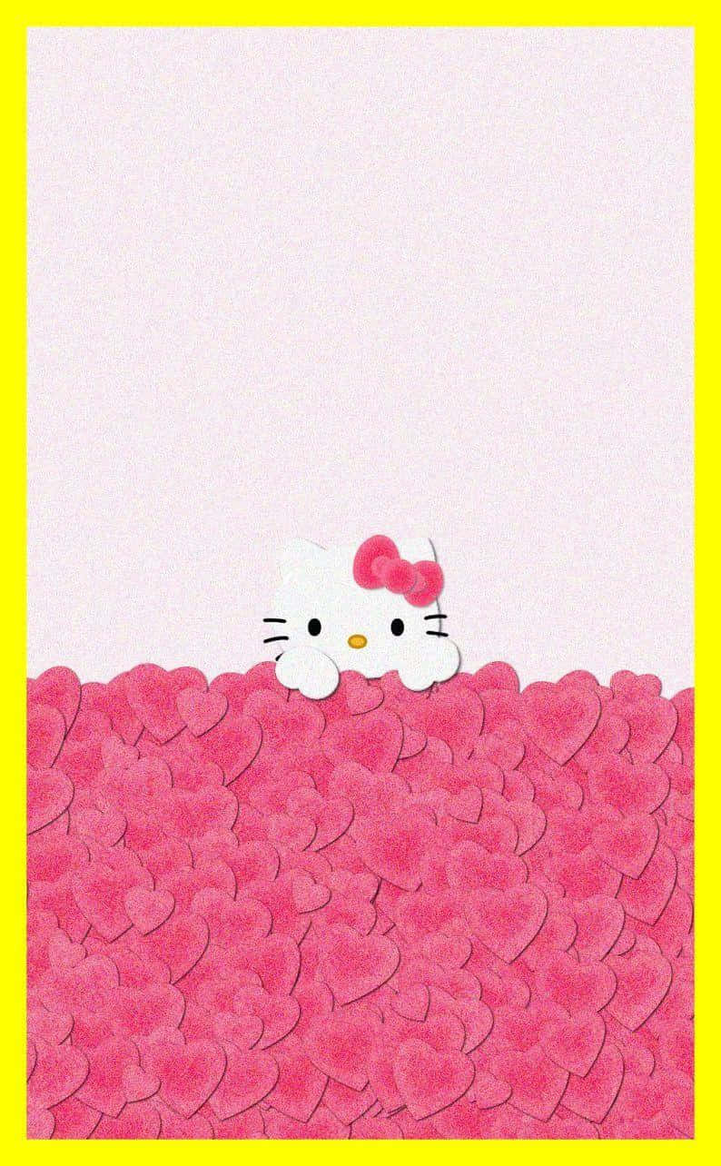 Hello Kitty On A Pink Background With Hearts Wallpaper -