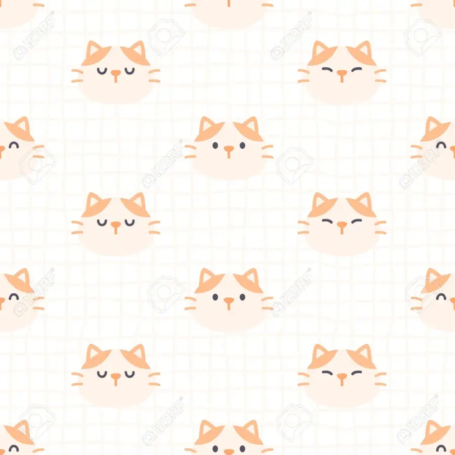 Seamless Pattern With Cute Cat Faces Wallpaper -