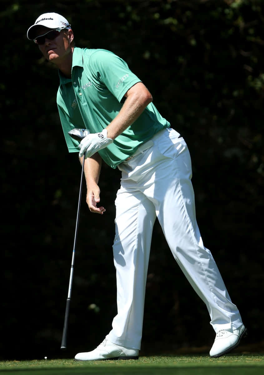 Caption: John Senden Exhibiting Perfect Post-swing Pose At A Golf Event. Wallpaper -