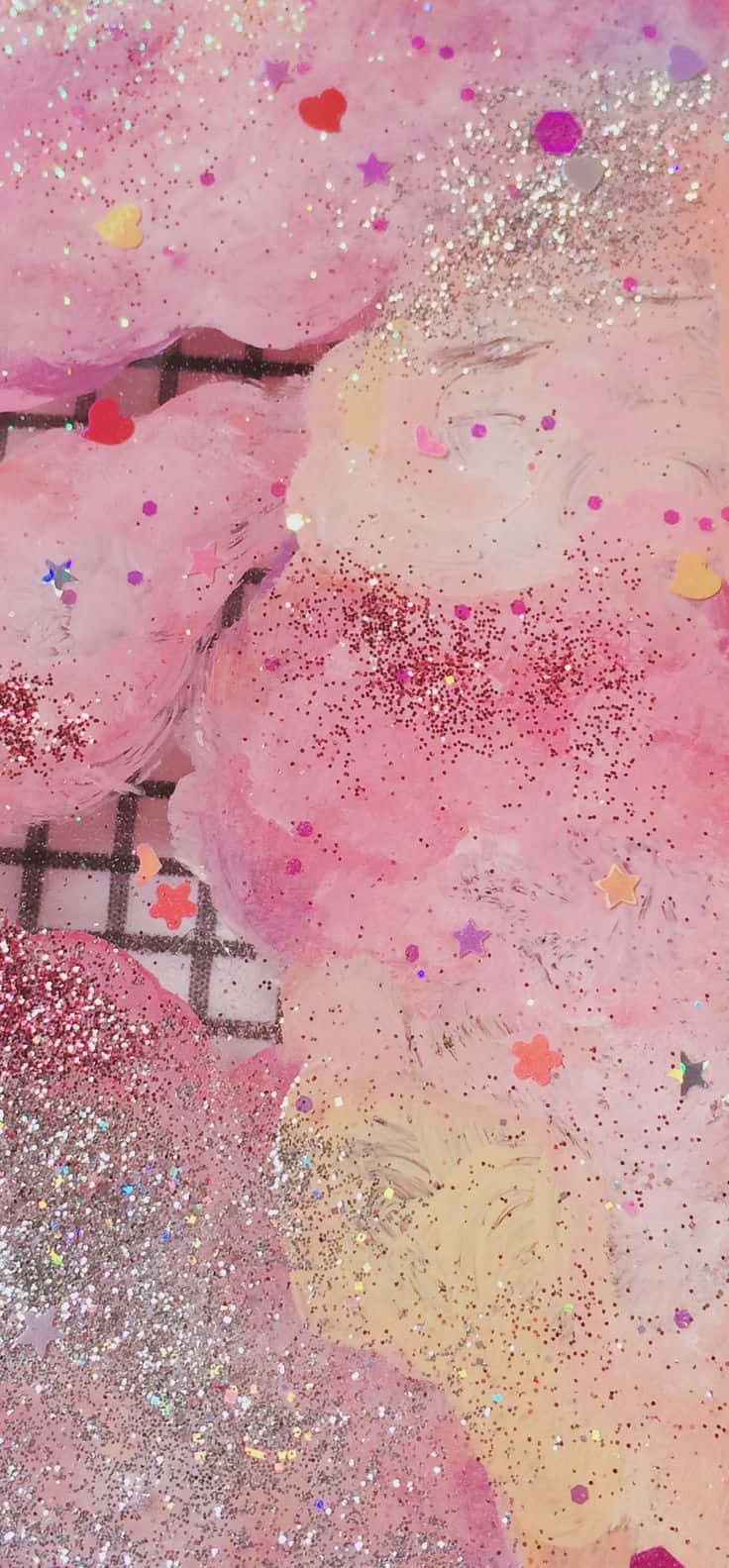 A Pink And Gold Glittery Painting With Stars Wallpaper