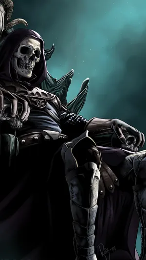 A Drawing Of A Skeleton Holding A Sword Wallpaper -