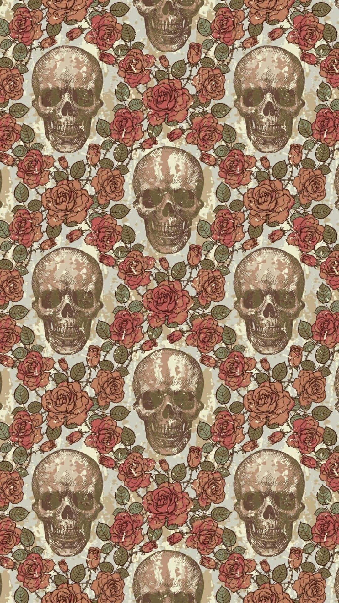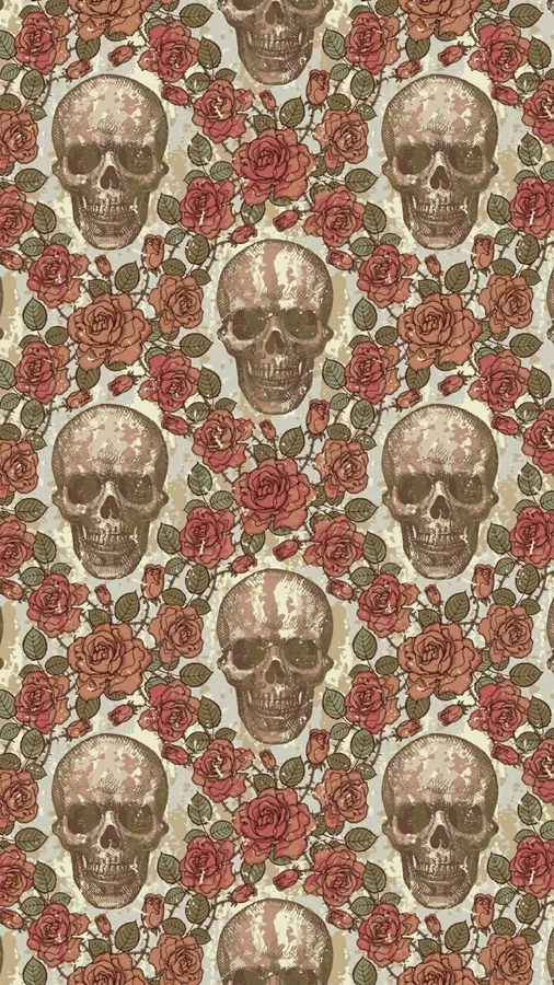 Skulls And Roses Pattern Wallpaper
