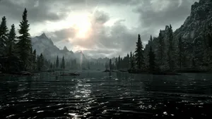 Skyrim Landscape Lake With Big Log Wallpaper -