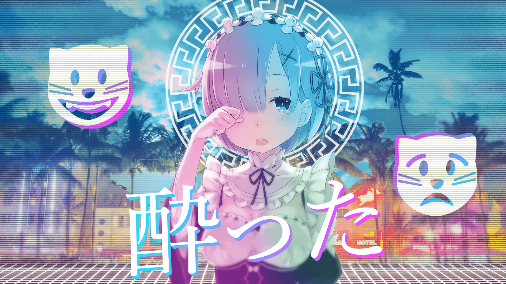 Sleepy Rem Anime Girl Aesthetic Vaporwave Wallpaper