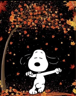 Snoopy Celebrates Autumn With A Joyful Dance Wallpaper -