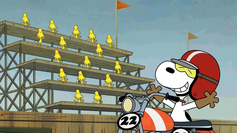 Snoopy Motorcycle Race Woodstock Cheering -