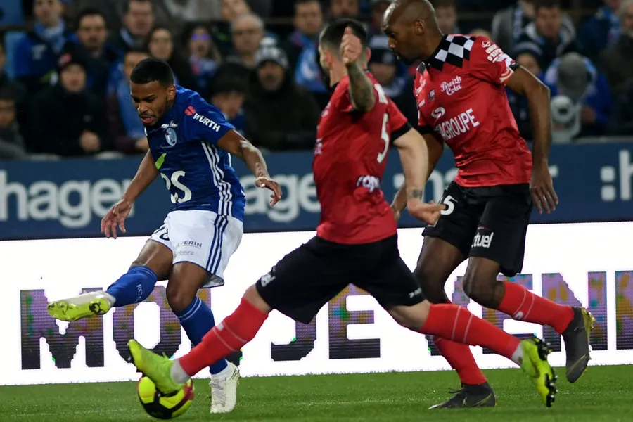 French Footballers Samuel Grandsir And Ruben Aguilar Ligue 1 Match Wallpaper -