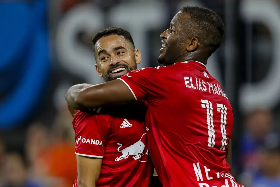 New York Red Bulls Midfielder Luquinhas Goal Shot Wallpaper -