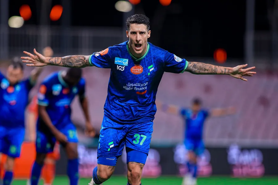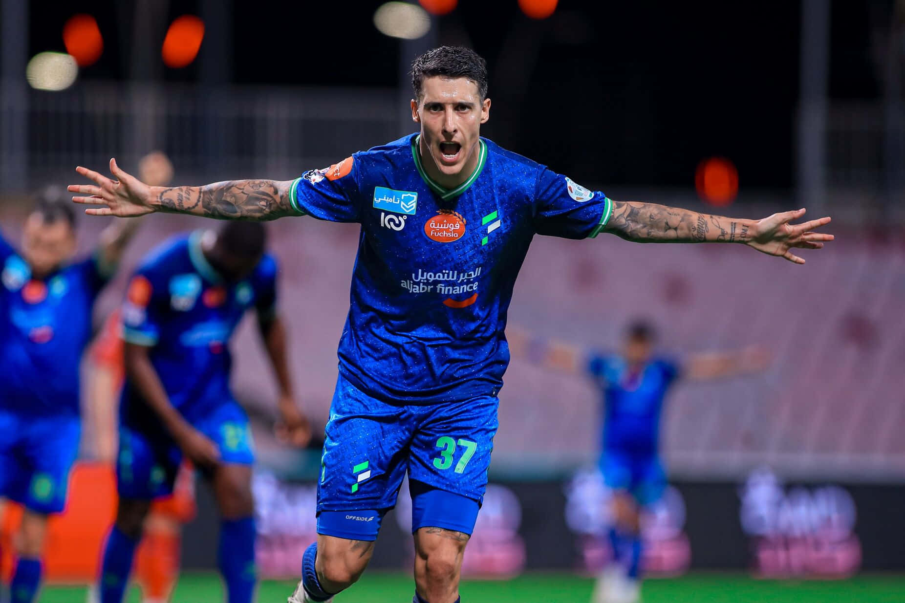 Cristian Tello Celebratingin Pink Jersey Wallpaper -