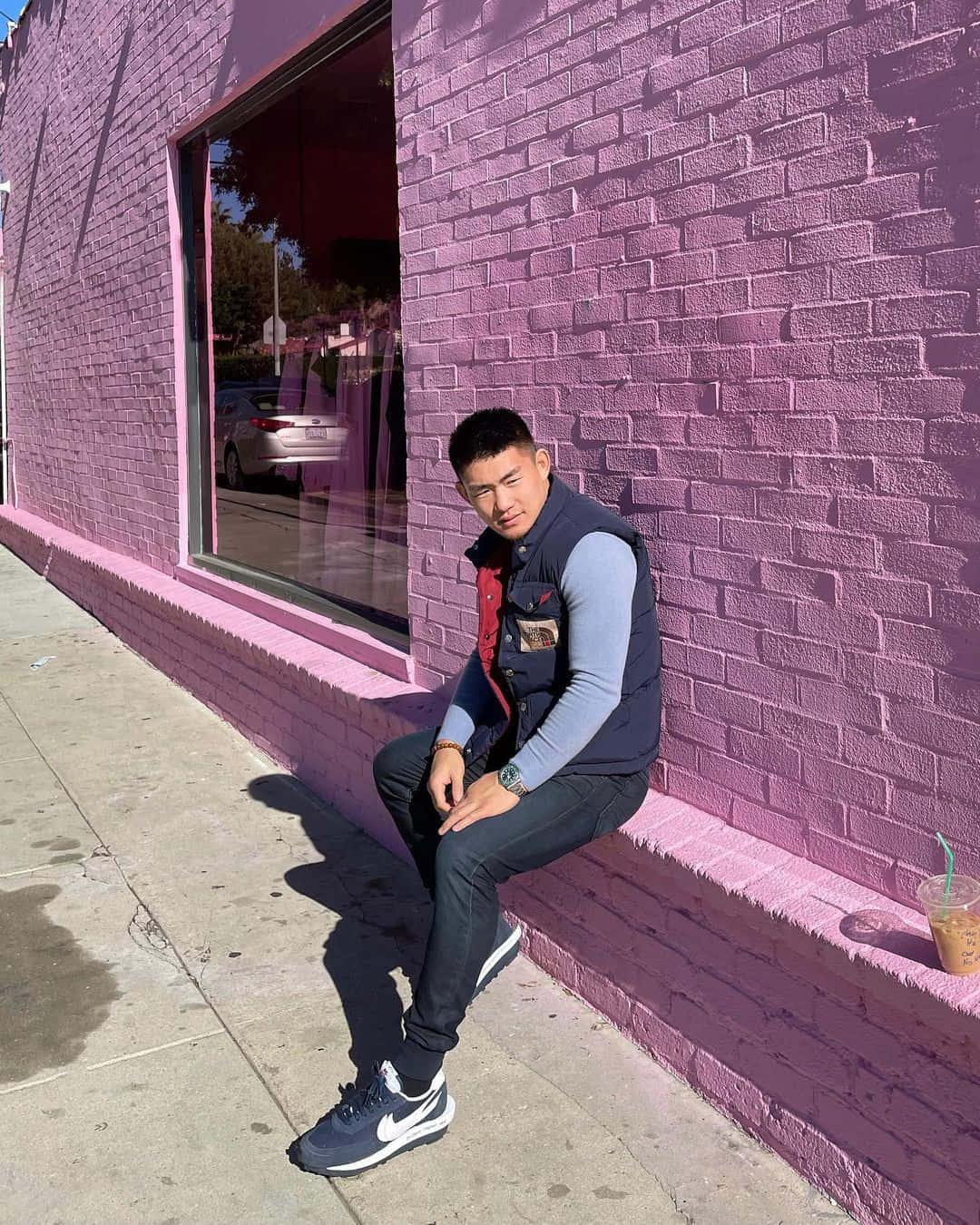 Song Yadong Sitting By Cute Purple Wall Wallpaper
