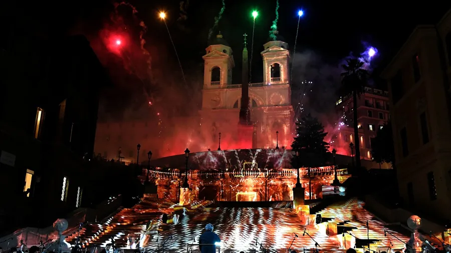 Enchanting Night View Of Spanish Steps, Rome Wallpaper -