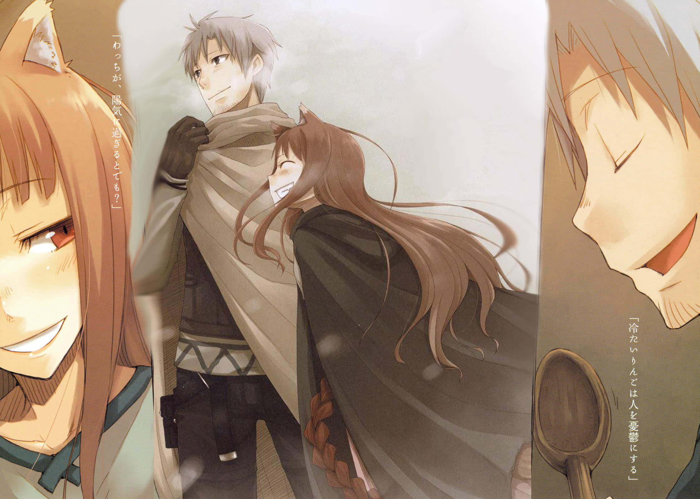 Spice And Wolf’s Holo Snuggles Up To Her Human Friend Wallpaper