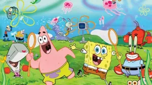 Spongebob Cool Jellyfish Catching Field Wallpaper  -