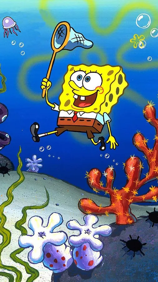Spongebob With Net Jellyfish Fields Wallpaper -
