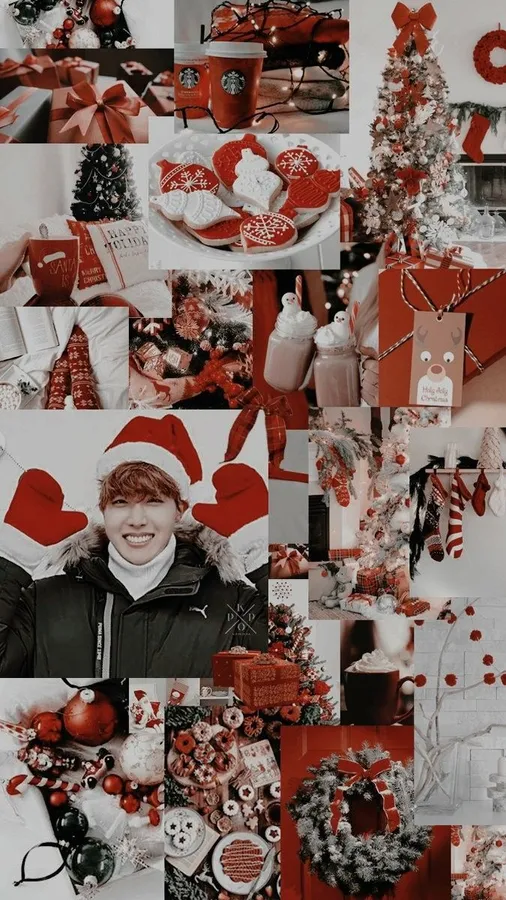 A Joyous Red Aesthetic Christmas" Wallpaper -