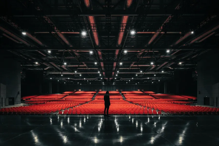 Theater With Long Red Curtains Wallpaper -
